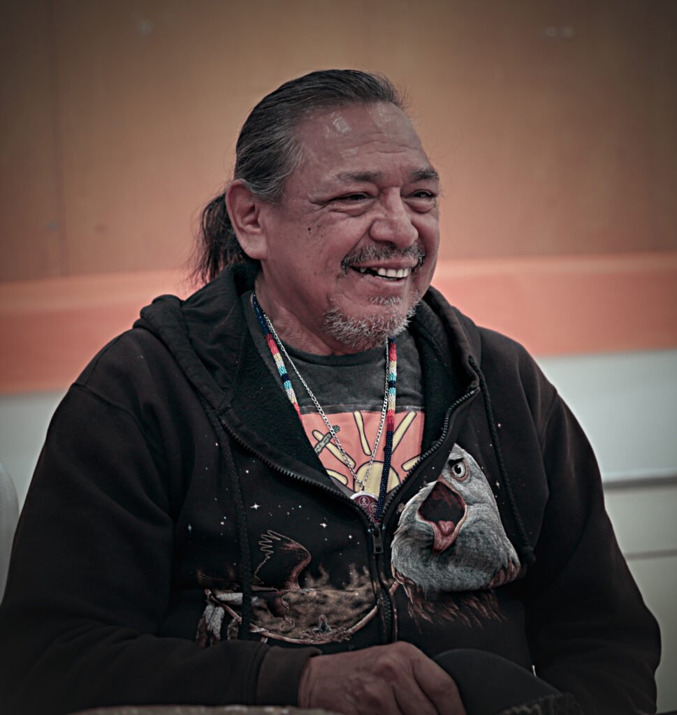 Mike, an Elder and Knowledge Keeper from Biinjitiwaabik Zaaging Anishinaabek (Rocky Bay First Nation), honored the Braiding Food Systems research team by opening the Food Fair with traditional prayers and ceremony, sharing his wisdom and cultural teachings with all participants.