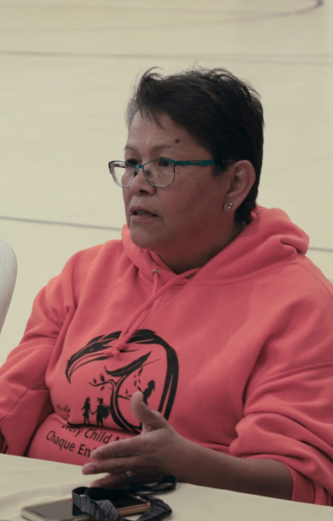 Lorraine Cook, Community Health Service Worker and dedicated gardener from Biinjitiwaabik Zaaging Anishinaabek (Rocky Bay First Nation), shared her valuable experiences and knowledge about growing food with the Braiding Food Systems team during the 2024 Food Fair.